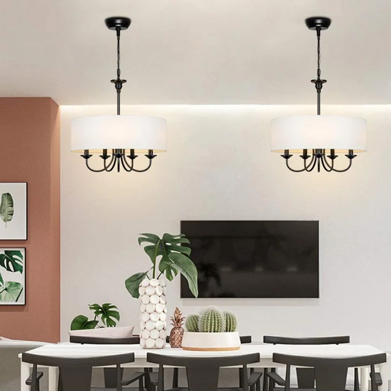 Lustre Moderno Cúpula Redonda Tecido Branco