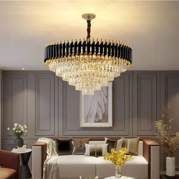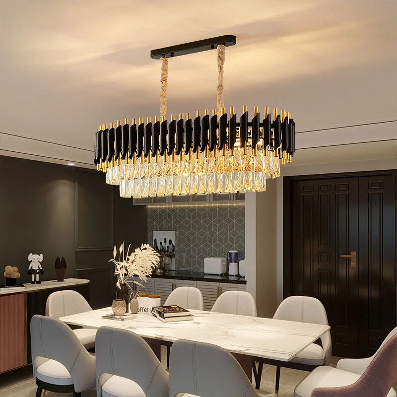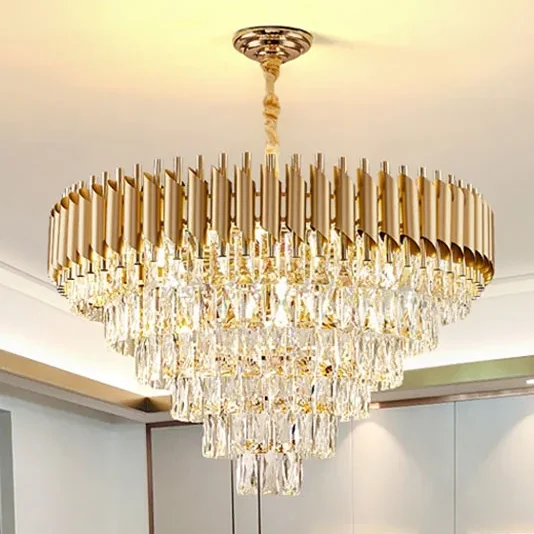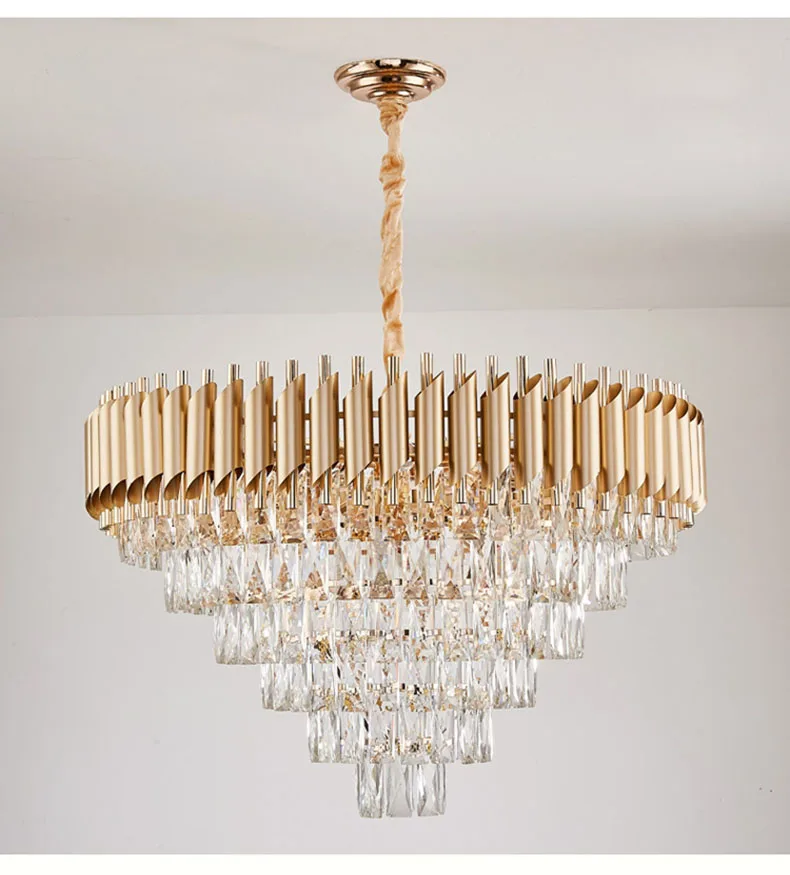 Lustre Moderno Dourado Com Cristais Transparentes K9