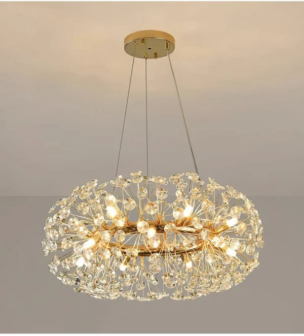 Lustre Dourado De Cristal e Luz De LED