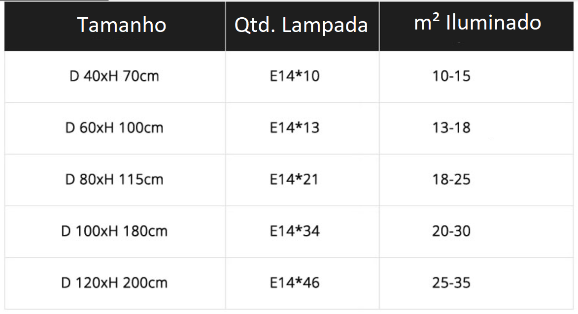 Em até 6x de R$620,55 sem juros À vistaR$3.350,95no PixEconomize R$372,33 no PixÀ vistaR$3.462,65no Boleto bancário Lustre Cone Fino Longo