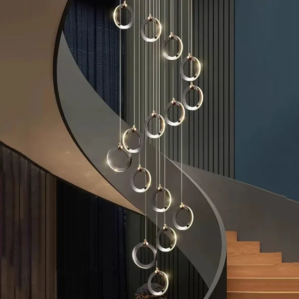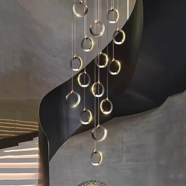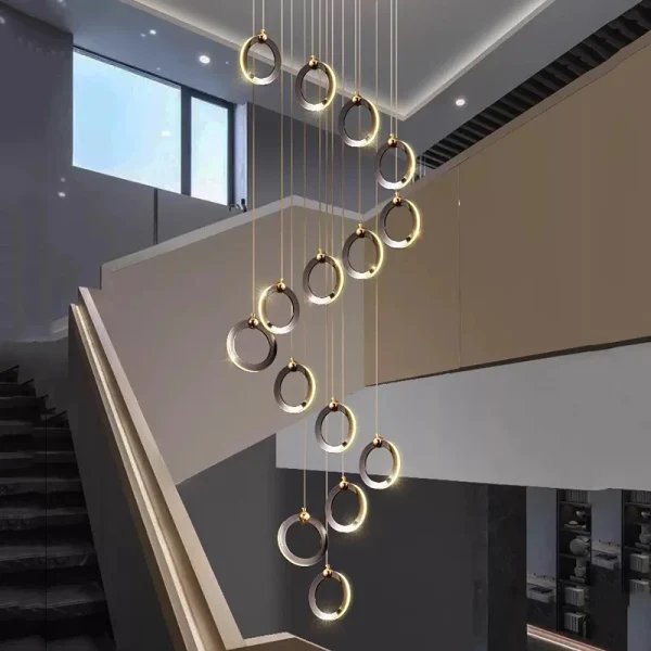 Lustre Para Escadas Moderno Argola Alumínio Cromado Com Luz LED
