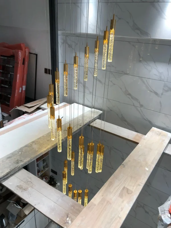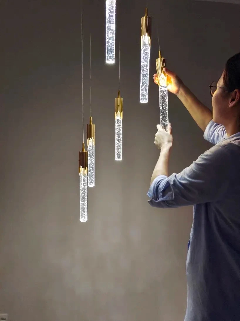 Lustre Para Escadas Vidro Bolha De Ar Tubular