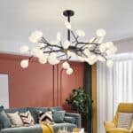 Na sala de jantar, entretanto, é um local ideal para adicionar um lustre galho de árvore pétalas de acrílico. Então, asse tipo de lustre pode ser o destaque da sala e criar um ambiente acolhedor e elegante. Ainda mais, coloque o lustre sobre a mesa de jantar para adicionar um toque de sofisticação à sua decoração. Opte, portanto, pela cor preta ou dourada, dependendo da paleta de cores da sua sala de jantar. As pétalas de acrílico semi-foscas são uma ótima escolha para iluminar o espaço com uma luz suave e difusa.