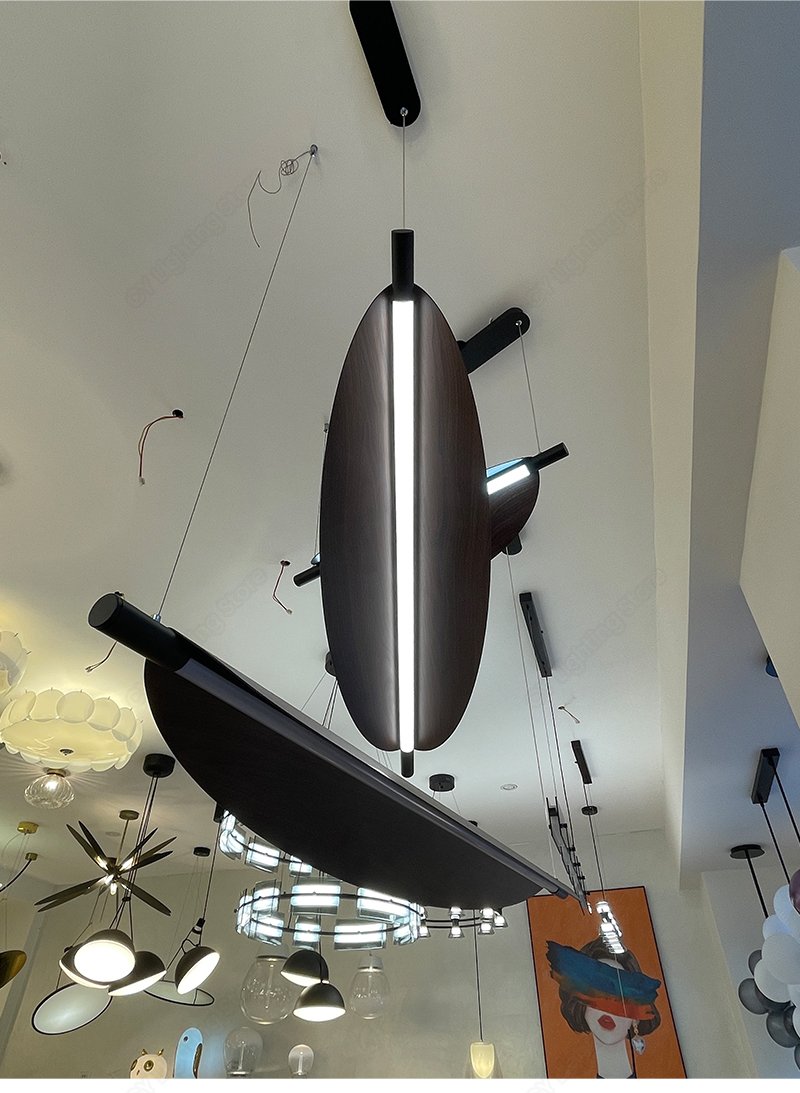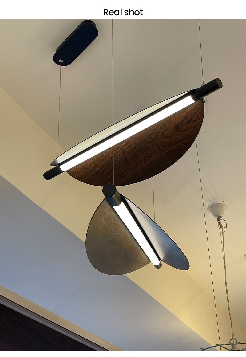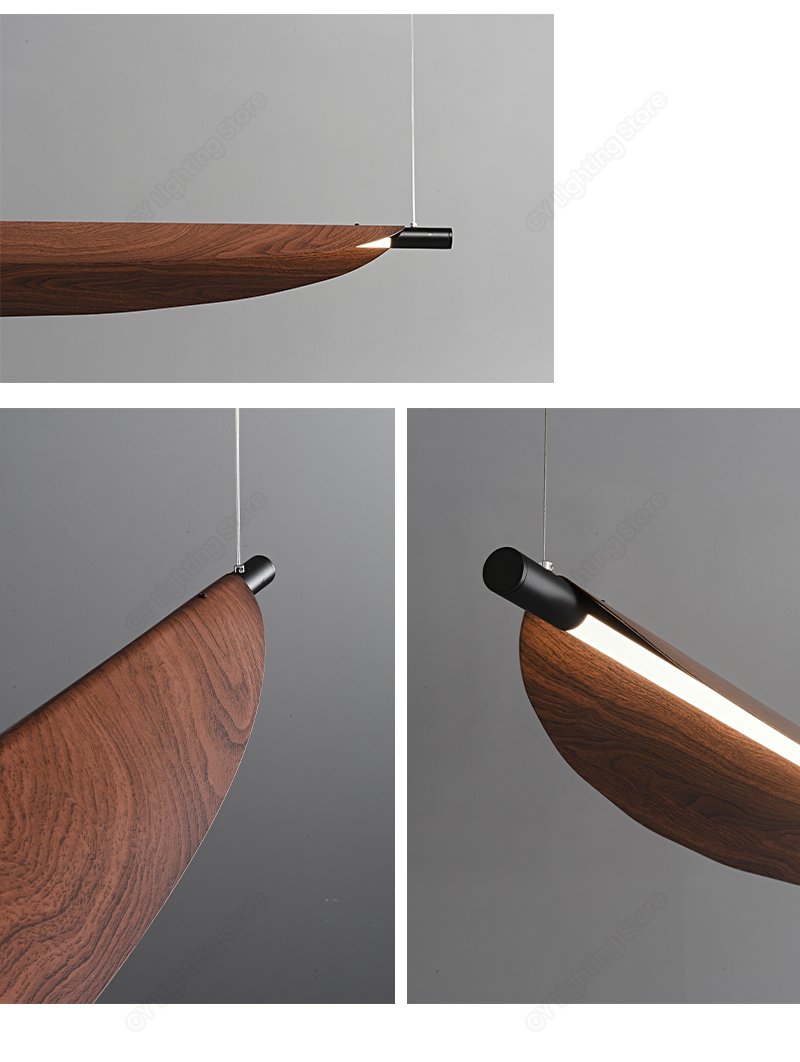Lustre retangular folha Acabamento Madeira