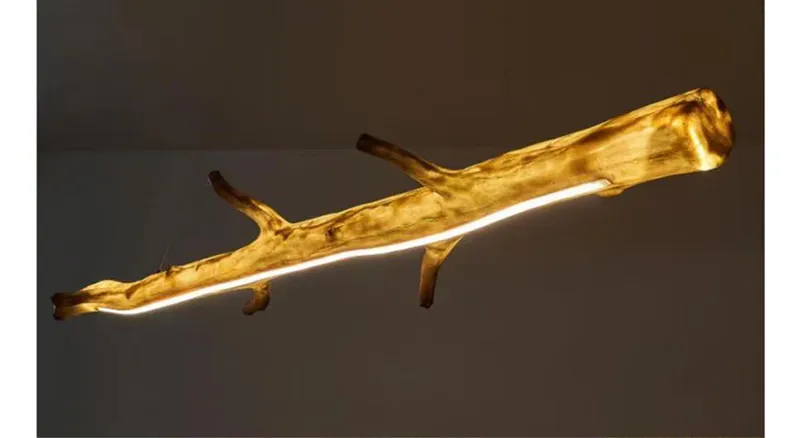 Lustre Retangular Resina Simulando Madeira