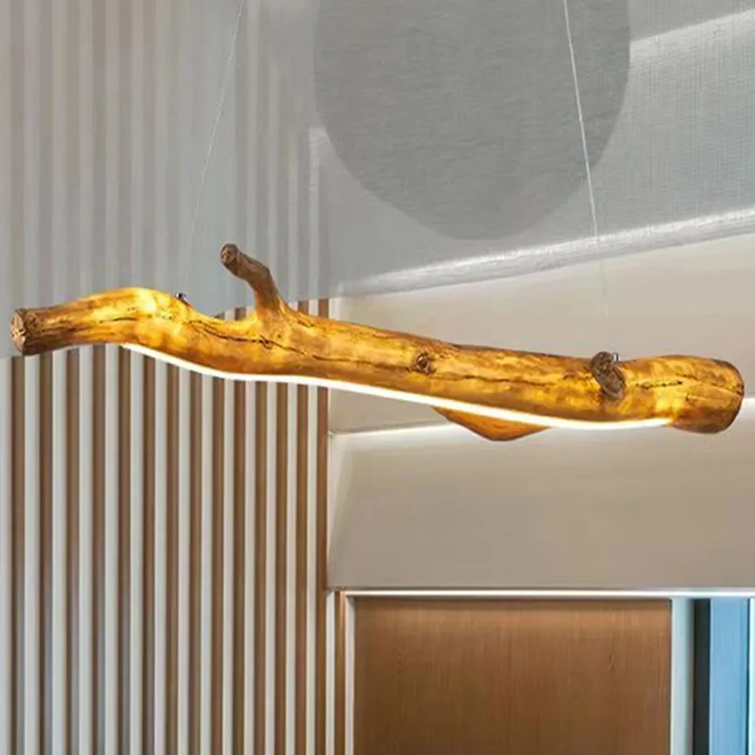 Lustre Retangular Resina Simulando Madeira