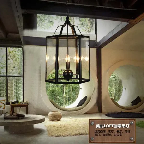 Lustre Retro Gaiola Preto Design Americano