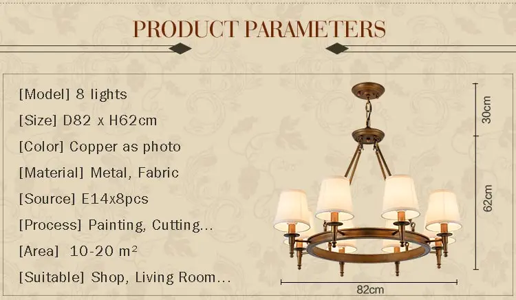- 8 luzes = diâmetro 80 cm. x altura 62 cm. Área recomendada de 10 a 15 metros quadrados.