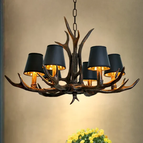 Lustre Rústico De Resina Com Cúpula Tecido Preta