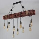 O Lustre rústico/vintage madeira é a escolha perfeita para quem busca um design rústico para sua iluminação. Com uma estrutura feita de madeira e fios disposto de forma despojada com fonte de luz aparente, esse lustre é robusoa e durável, garantindo anos de uso eficiente.