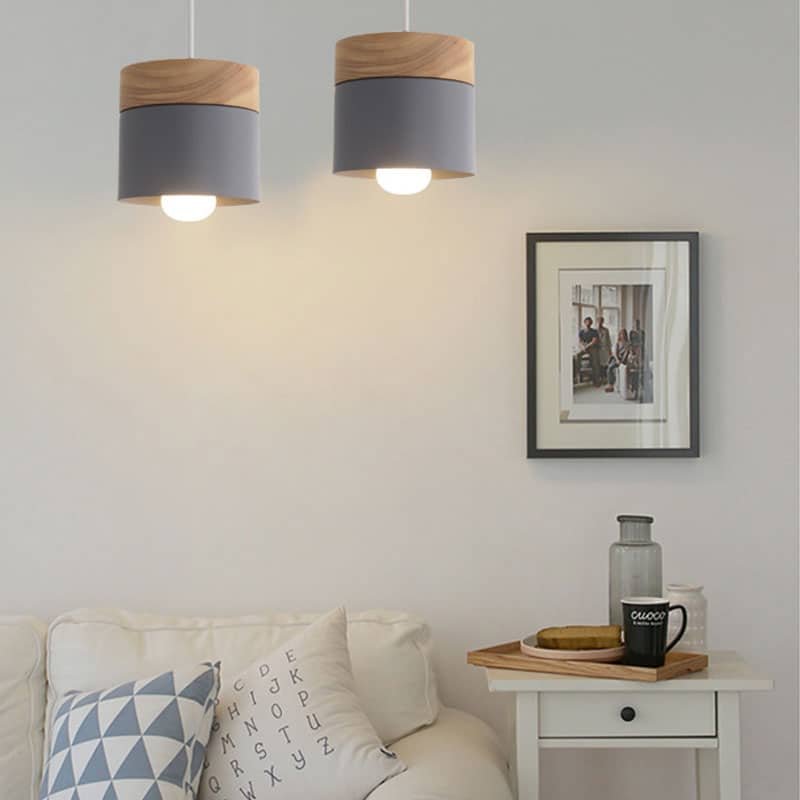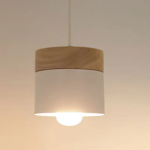 Pendente vintage redondo alumínio acabamento fosco e base de madeira