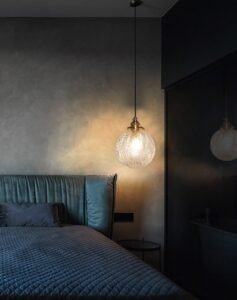 - Cabeceira de cama quarto do casal: A luminária Pendente bola vidro é utilizado como luminária de cabeceira, criando então um ambiente aconchegante e relaxante. Colocado, sobretudo, em um ou ambos os lados da cama.
