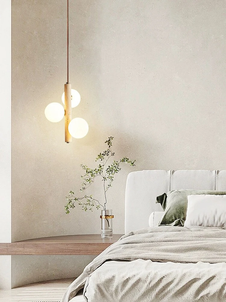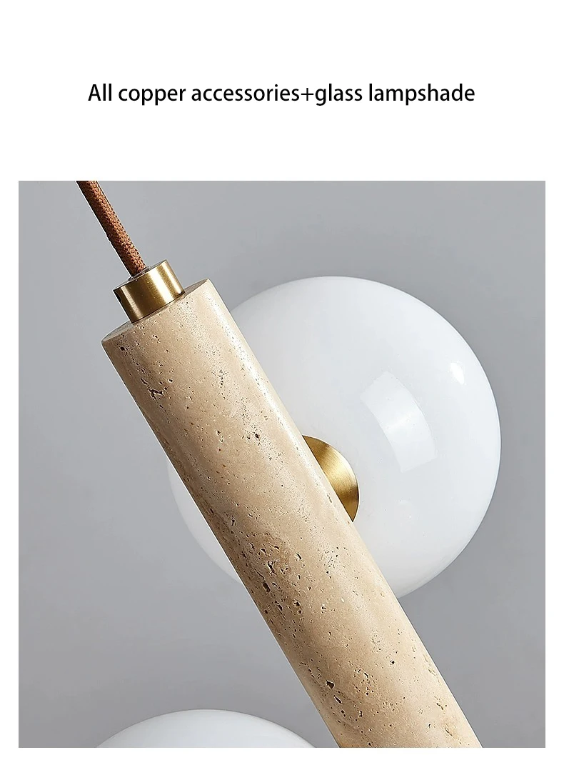 Pendente Com Estrutura Acabamento Pedra Com Bolas De Vidro