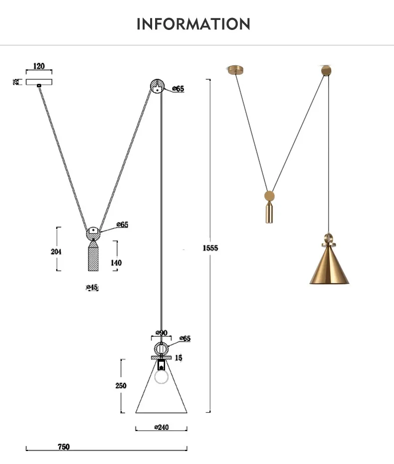 Pendente Industrial Ajustável Industrial Polia