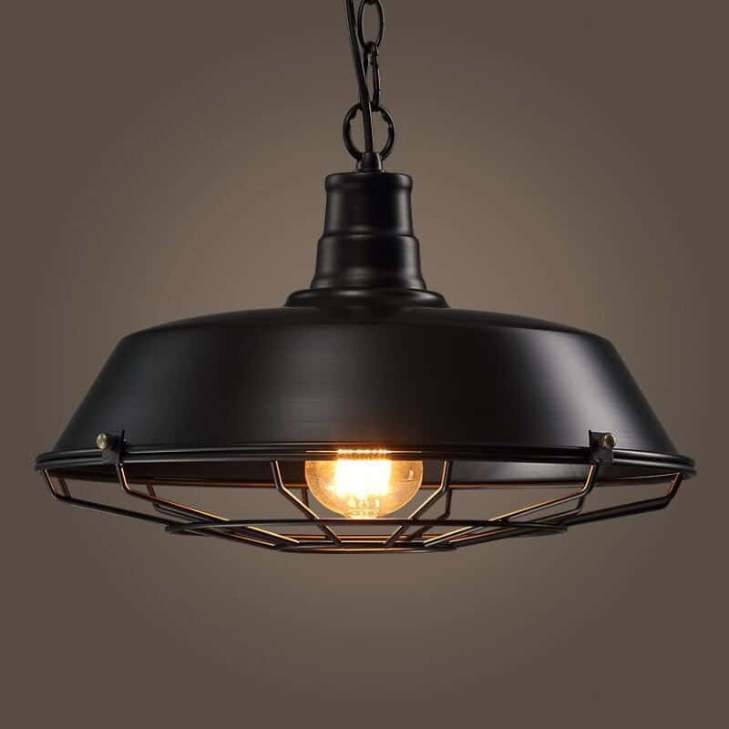 Pendente industrial preto difusor de gaiola/aramado