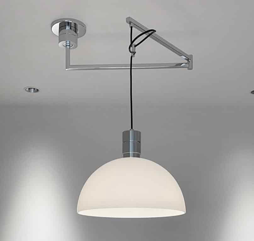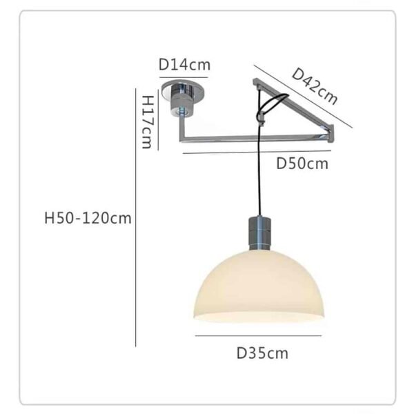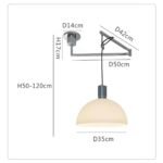 Medidas do pendente moderno meia esfera branca e haste articulada Miresa