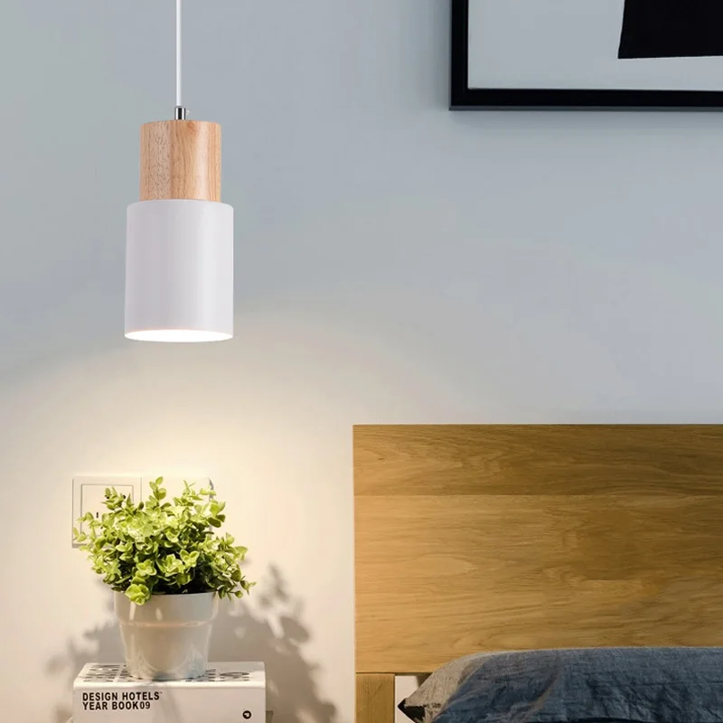 Pendente Moderno Basic Alumínio Fosco Detalhe Madeira