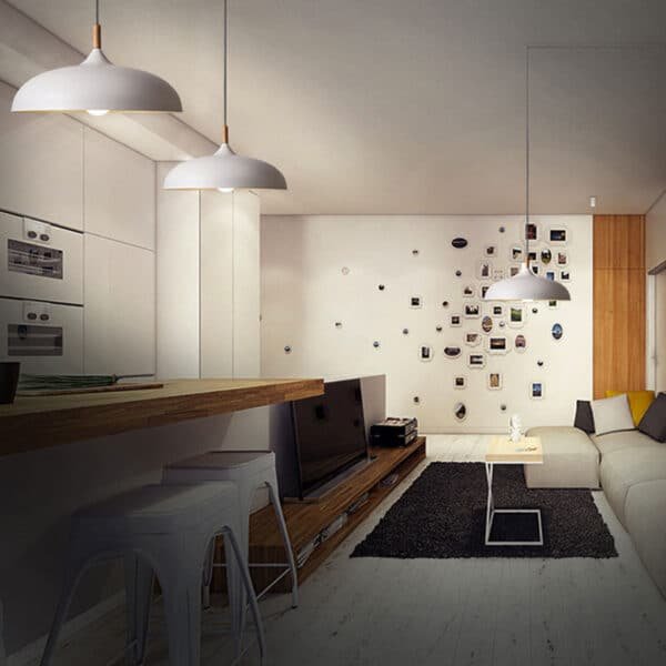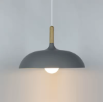 Pendente moderno alumínio pintura lisa colorida e detalhe de madeira