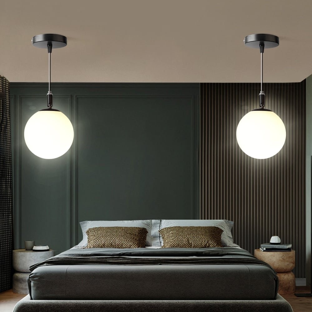 Luminária plafon sobrepor bola/esfera de vidro branco leitoso e alumínio preto