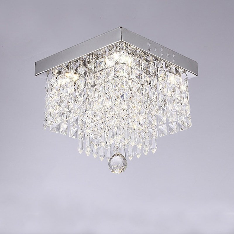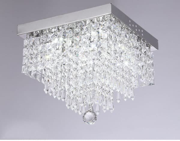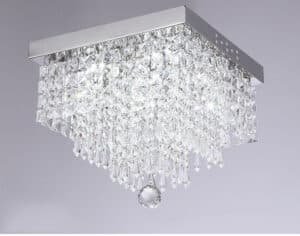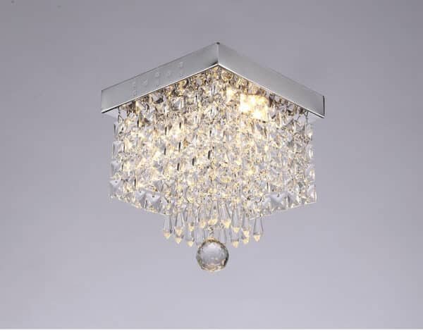 Luminária de sobrepor, plafon quadrado cromado e pingente de cristal translúcido
