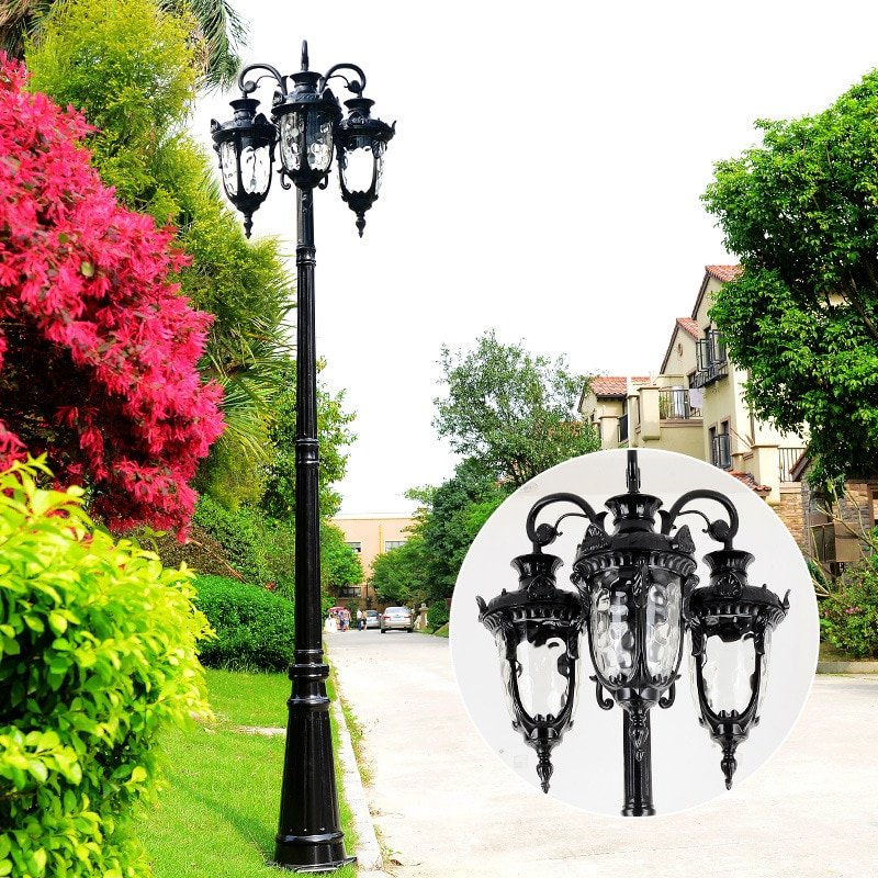 Luminária poste alto design clássico/retrô para iluminação de jardins, varandas e em praças públicas