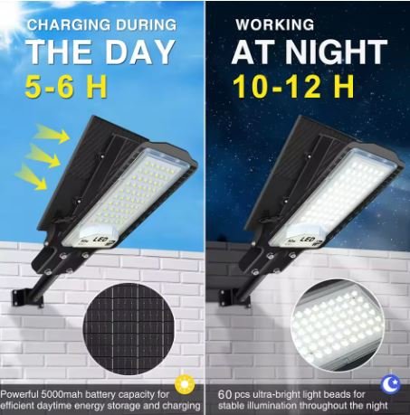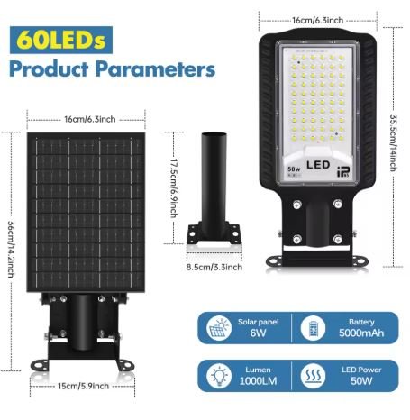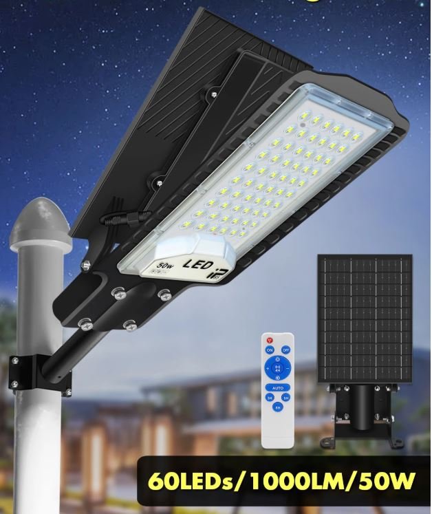 Poste Iluminação Pública Solar 1000 Lumens com 60 Led’s 50W