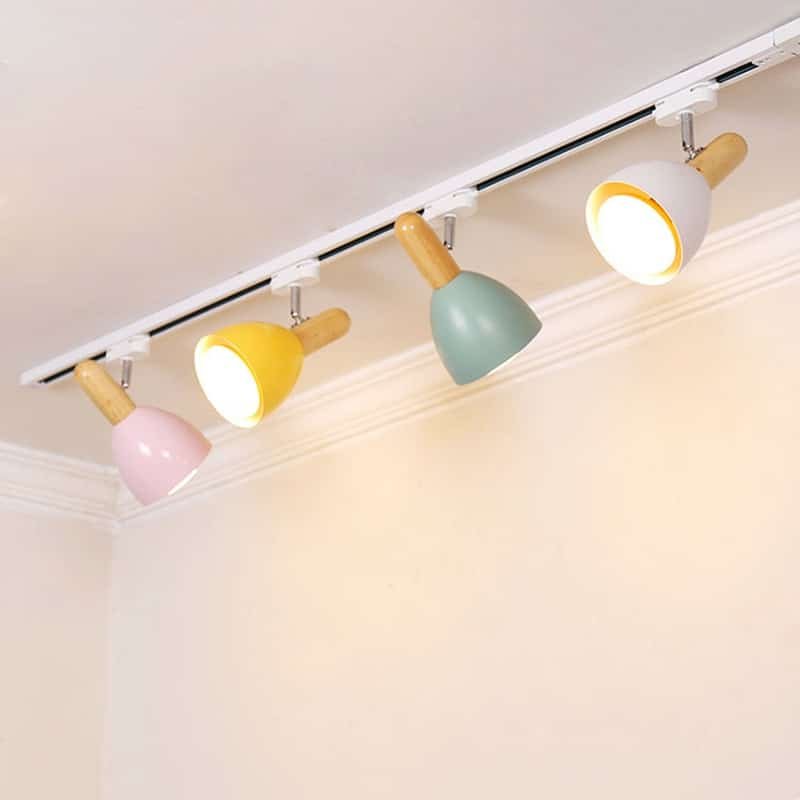 Spot desenho tipo cunha, de alumínio acabamento polido colorido e fixação para trilho industrial eletrificado