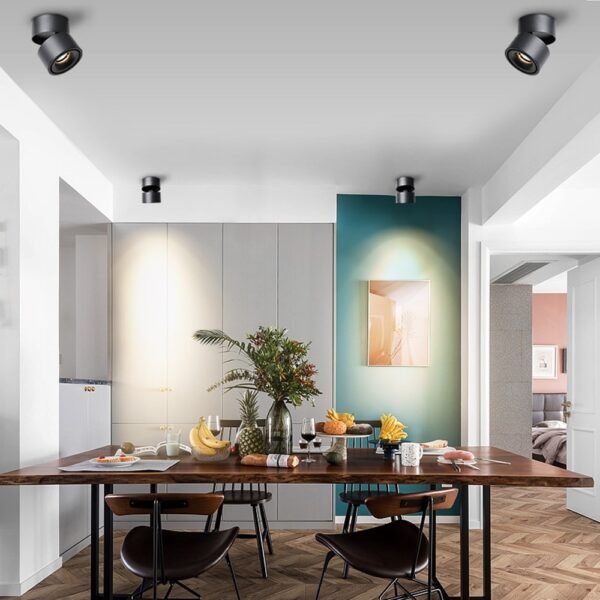 - Decoração: Combine o spot com paredes e móveis em tons neutros para um visual moderno e clean. Use a cor do corpo branco para ambientes mais claros e frescos, ou preto para um contraste elegante e sofisticado. Ajuste o ângulo do feixe para destacar elementos decorativos e criar uma iluminação dinâmica.