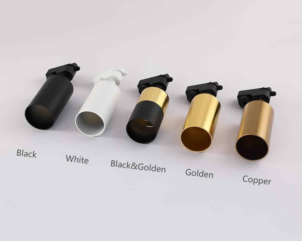 Spot de led sobrepor dourado, preto ou branco com rotação 360° com opção de canopla redonda e adaptação para trilho eletrificado