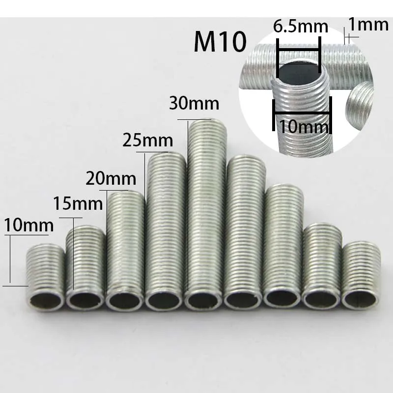 10 Pçs/lote Lâmpada Dente Tubo Metal M10 Oco Tubo Rosqueado Galvanizado Led Lâmpada Cabeça Link Base Fixa Suporte Rod Acessórios de Iluminação Parafusos